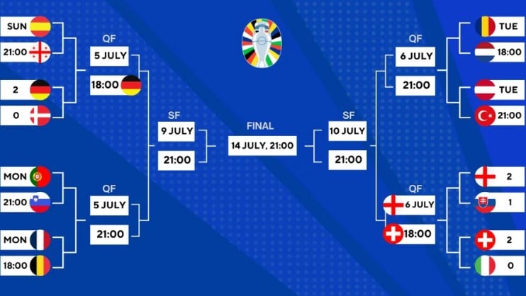 - Quarterfinals: The quarterfinal matches will take place from July 2 to July 3, 2024, in Munich, Rome, Saint Petersburg, and Baku.